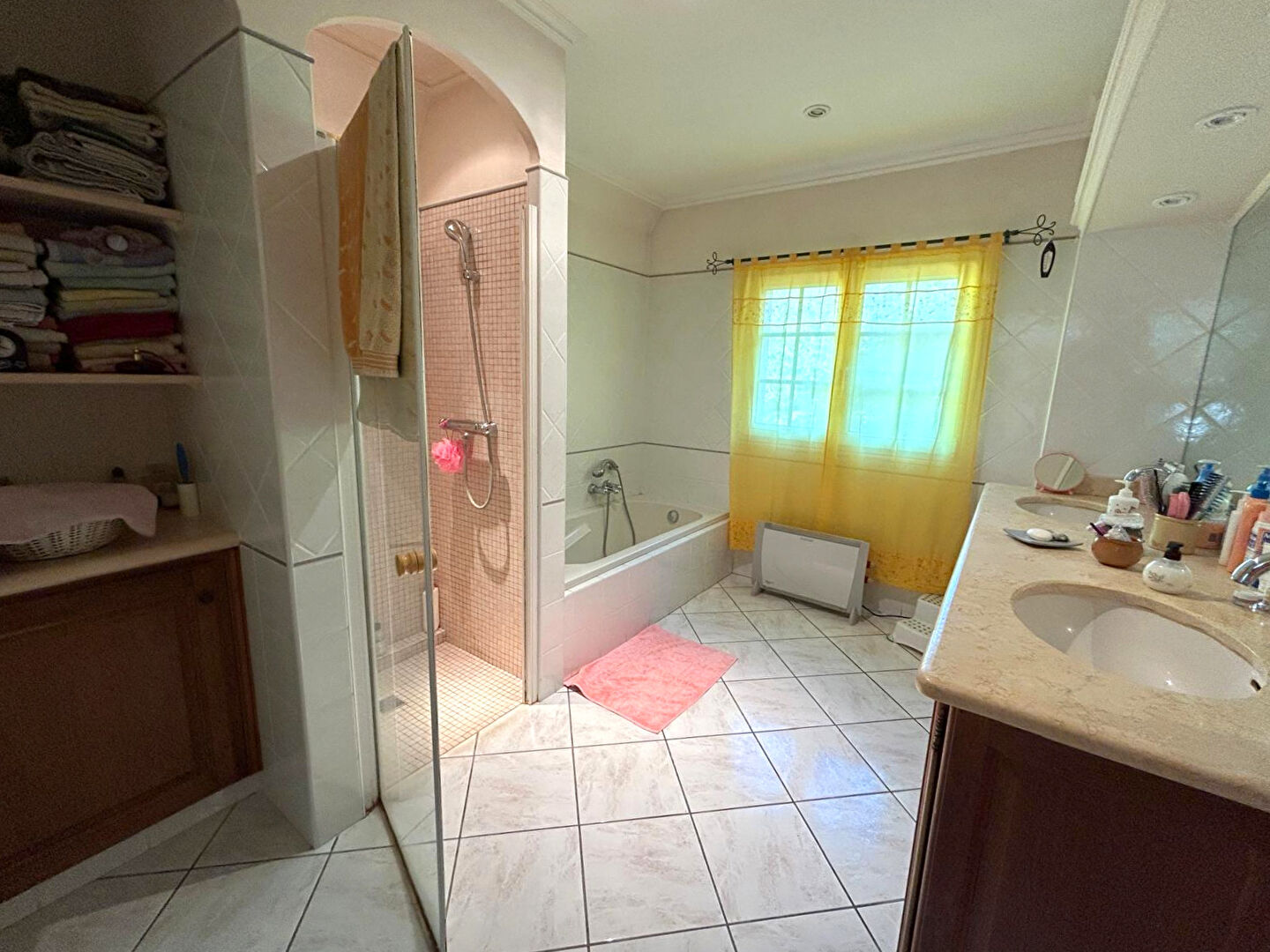 Double garage, abri voitures, cave, sous sol, piscine au sel 8×4, aspiration centralisée…