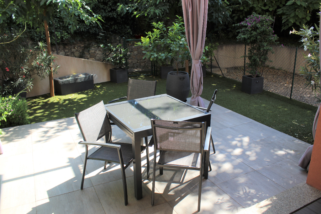 A VENDRE BRIGNOLES EXCLUSIVITE : Situé non loin du centre-ville, dans une résidence de 13 appartements, en rez-de-jardin, très bel appartement T2 de 44.20 m² (loi carrez), lumineux et disposant de son propre jardin privatif.