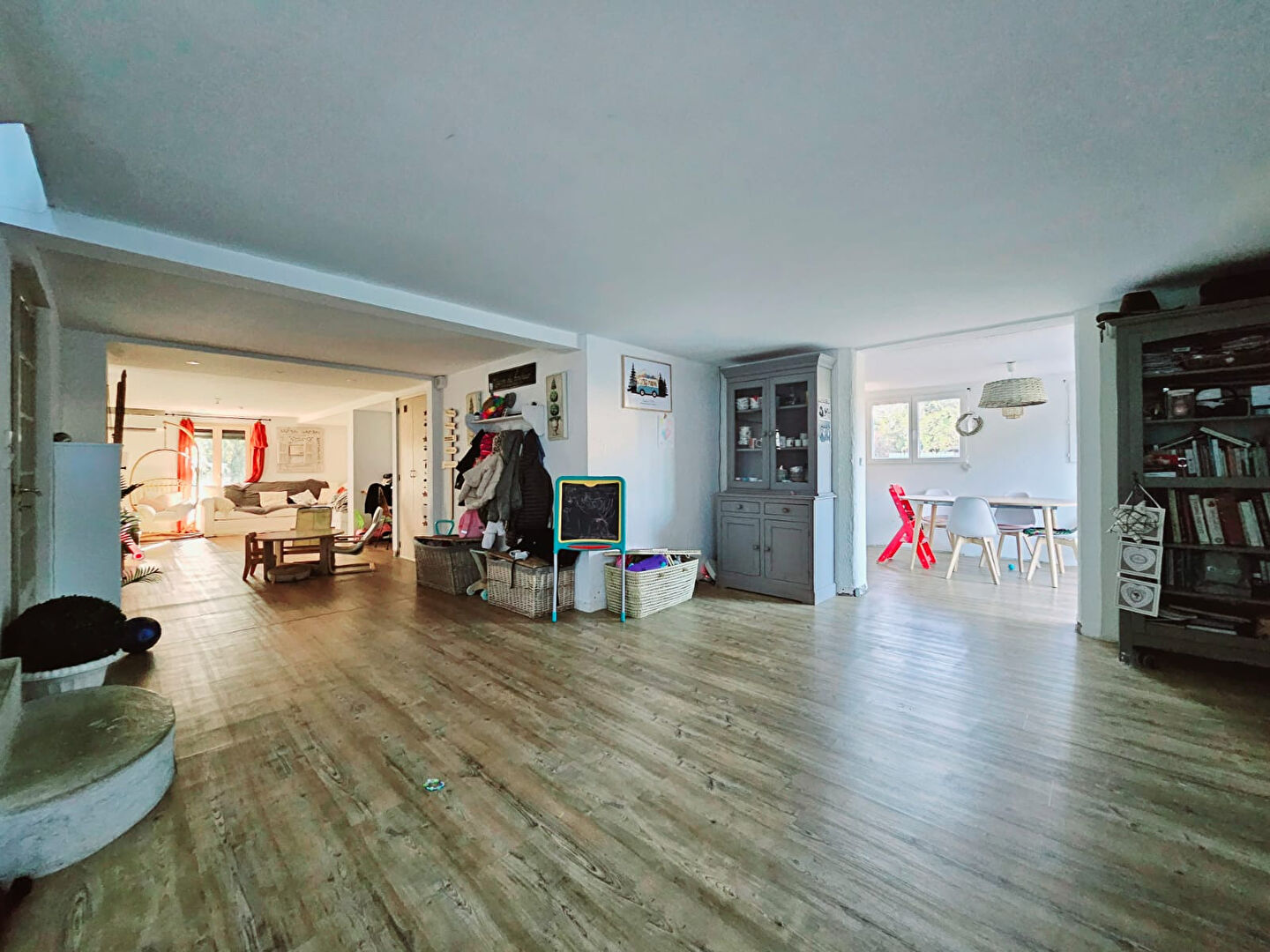 La maison se compose en rez-de-chaussée, d’un hall d’entrée, une cuisine aménagée ouverte sur la salle à manger avec accès sur une terrasse ainsi qu’un grand salon.