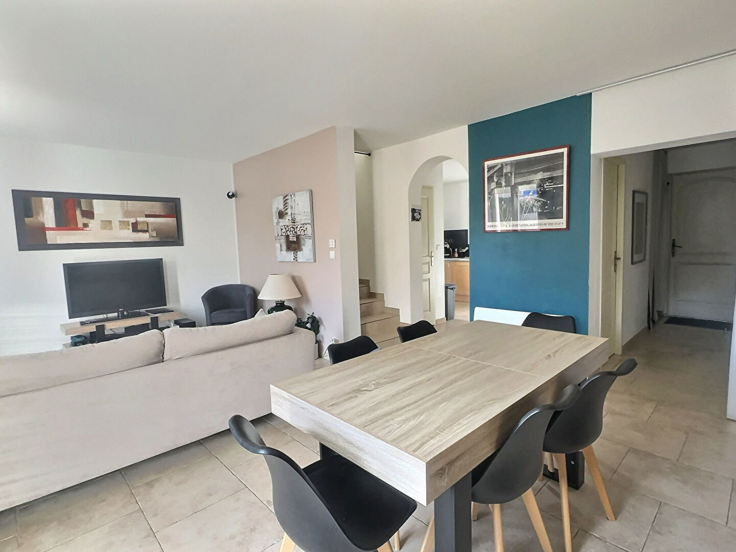 A vendre en exclusivité avec vos agences immobilières SWEET HOME : FORCALQUEIRET, à deux pas du centre du village, sur un terrain plat et aménagé, très belle maison d’environ 88 m², dans un état irréprochable. Élevée d’un étage et mitoyenne d’un côté, elle se compose : Au rez de chaussée : d’une entrée, d’un salon / séjour de plus de 25 m², d’une cuisine semi ouverte de 9.7m² et d’un WC indépendant.