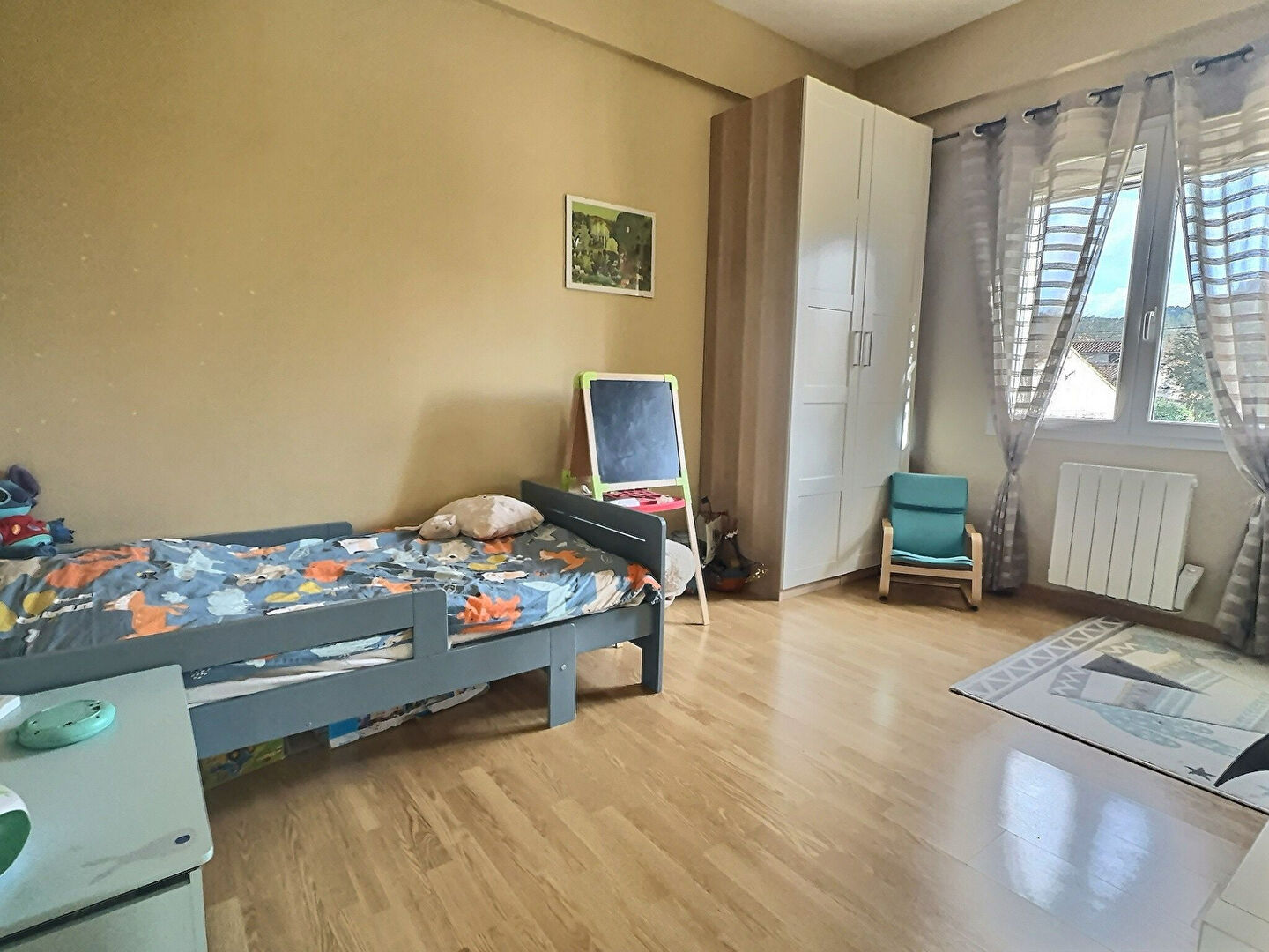 A l’étage : Trois chambres de plus de 10 m², une salle d’eau avec WC.