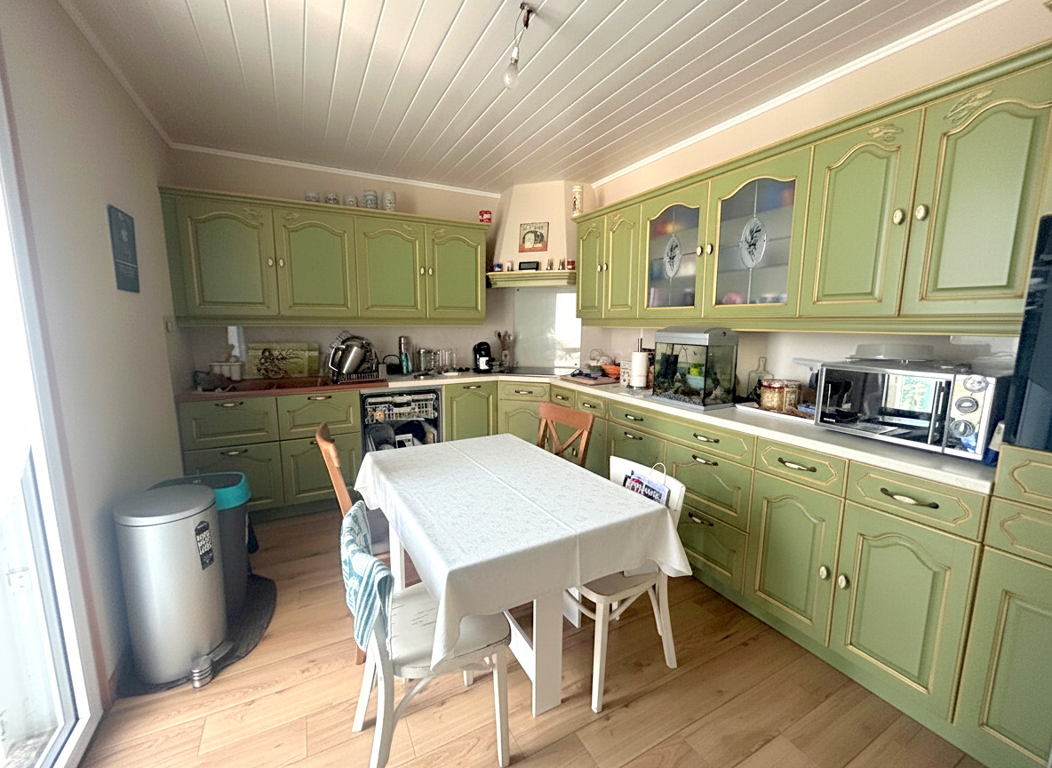 A l’étage, un appartement T5 d’environ 120 m² propose une belle base pour un projet familial. Immenses combles.