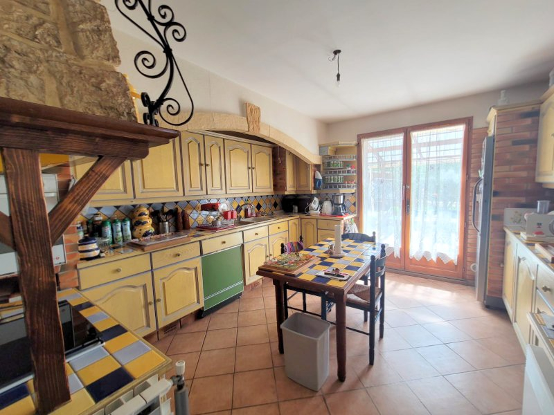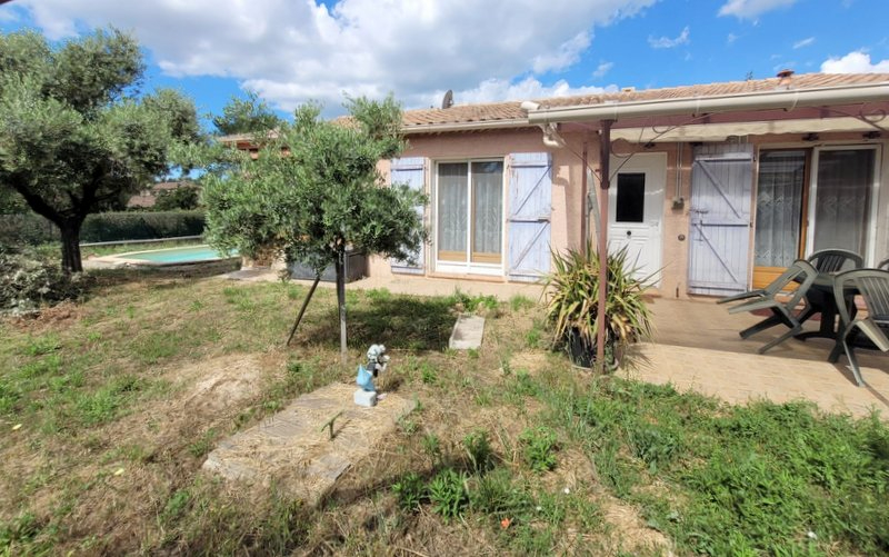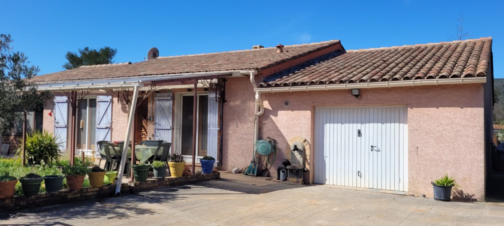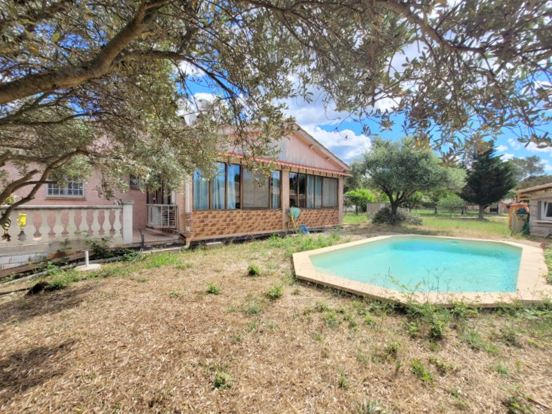 A vendre à GAREOULT en Exclusivité Sweet Home: Maison de plain pied d’environ 130 m² habitables comprenant : une entrée, un grande pièce de vie de 55 m² avec cuisine ouverte, une véranda de 25 m², trois chambres, une salle de bain et un WC indépendant . A l’extérieur, une piscine, un grand garage de 50 m² et plusieurs annexes. Le tout édifié sur 1800 m² de terrain plat aménagé et clos, en impasse, au calme. Assainissement individuel à remettre aux normes actuelles.