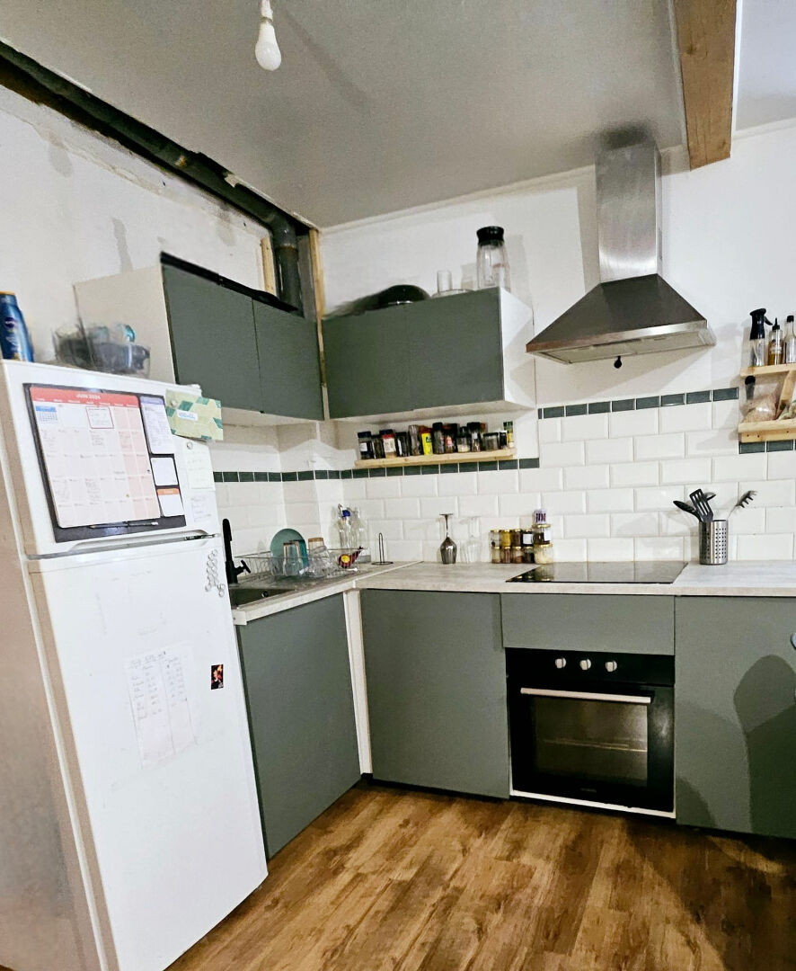 Au premier étage: une cuisine équipée ouverte sur la pièce de vie.
