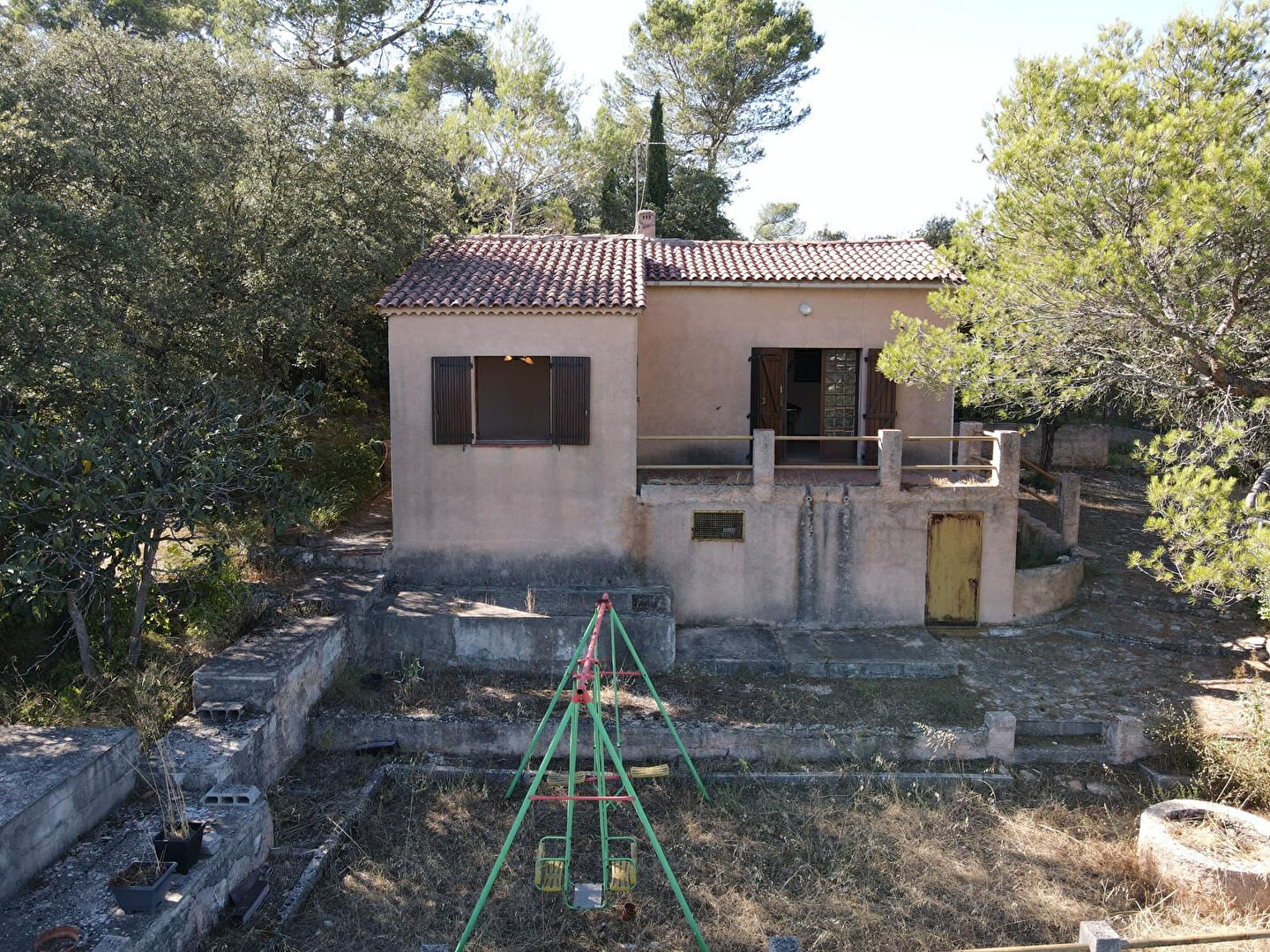 Au calme, en bout d’impasse, maison d’environ 53 m² habitables édifiée sur un magnifique terrain en grande restanques, offrant une vue panoramique, de 1950 m² entièrement clôturé.