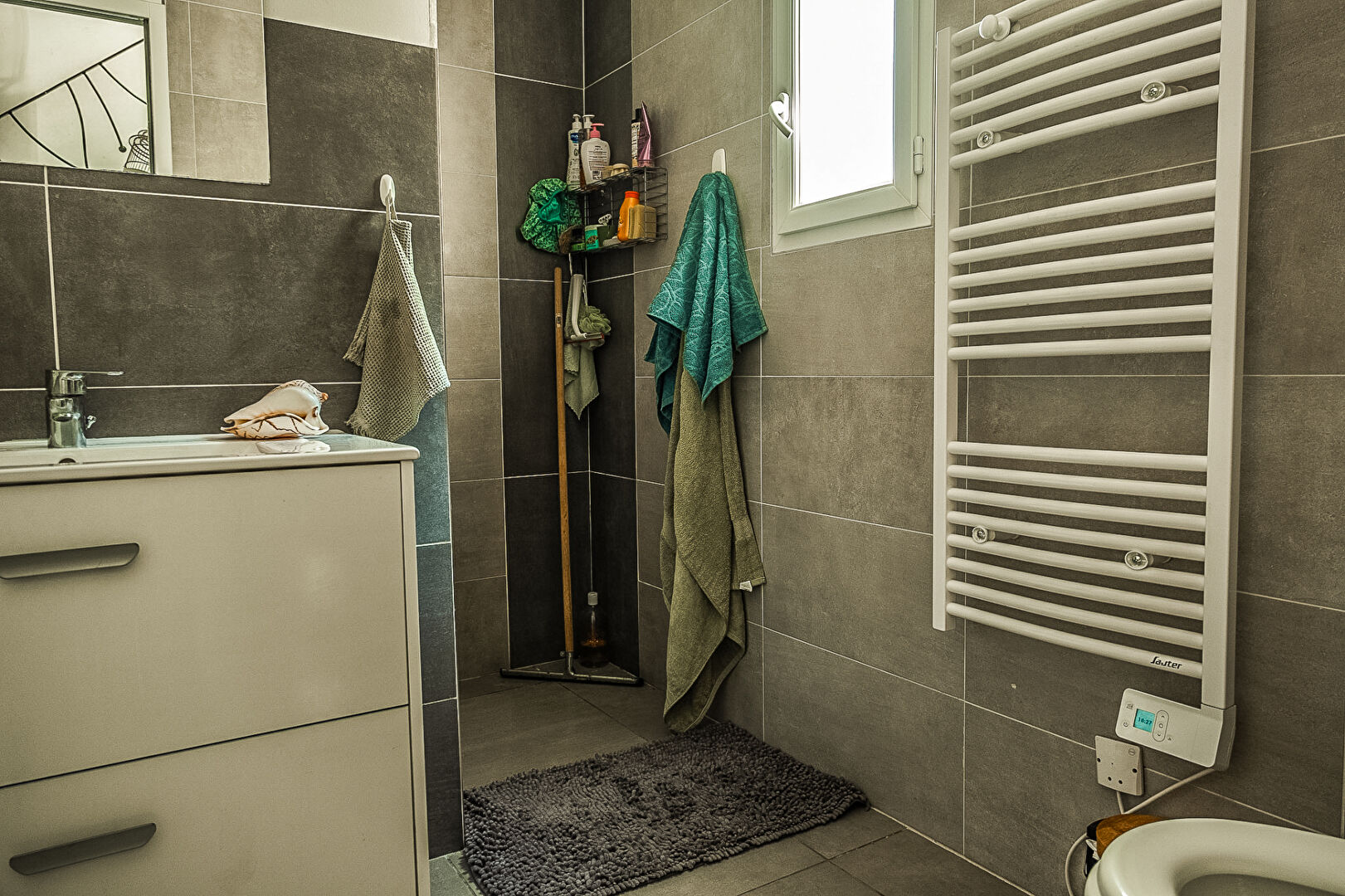 Située dans un lotissement verdoyant de 4 habitations mitoyennes, maison de 2015 en bon état et sans travaux. La maison se compose d’une belle pièce de vie d’environ 43 m² avec cuisine américaine équipée, une chambre avec placards, un grand dégagement avec coin machines, et une salle d’eau avec WC. A l’étage, deux chambres dont une avec placards par laquelle on accède au toit terrasse d’environ 40 m² , une salle d’eau avec WC.