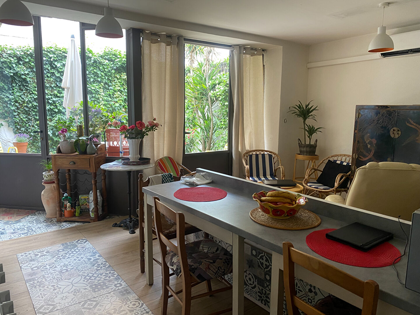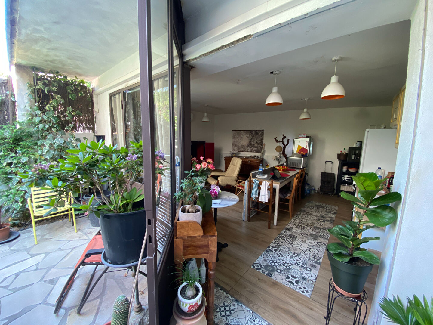 A vendre, en exclusivité Sweet Home, en plein centre ville de GAREOULT, sur la rue principale maison de village édifiée sur deux niveaux comprenant actuellement au rez-de-chaussée un local commercial donnant sur un patio et à l’étage un appartement de type 3 avec balcon. Gros oeuvre en bon état, travaux d’aménagement à prévoir.