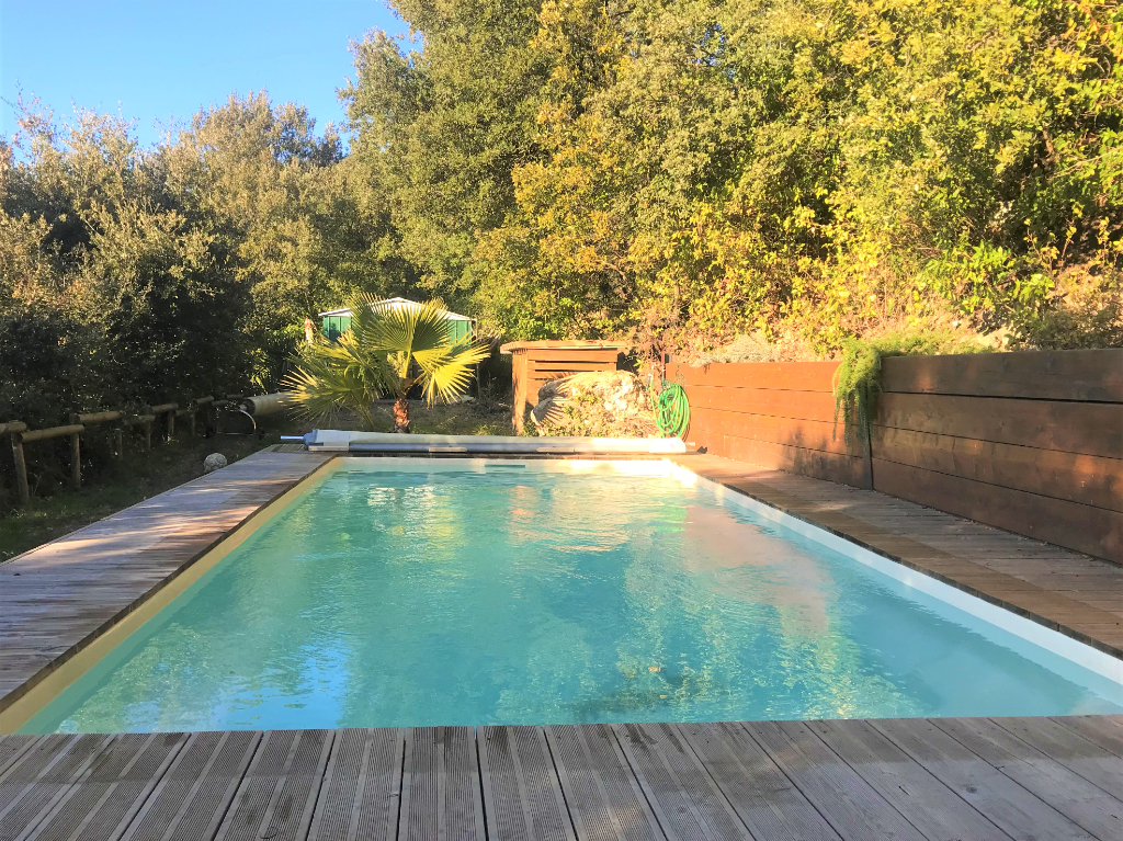 A l’extérieur, vous profiterez d’une terrasse avec pergola et d’un très agréable espace piscine sans vis-à-vis. Panneaux photovoltaïques, abris jardin…
