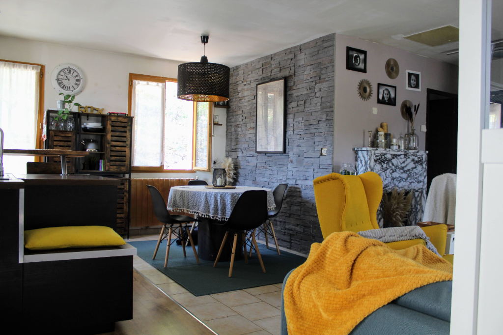 La maison, en bon état général, se compose d’une pièce de vie d’environ 42 m² avec cuisine américaine équipée, trois chambres dont une mansardée, un bureau de 8 m², salle d’eau avec douche à l’italienne, WC séparé et buanderie.