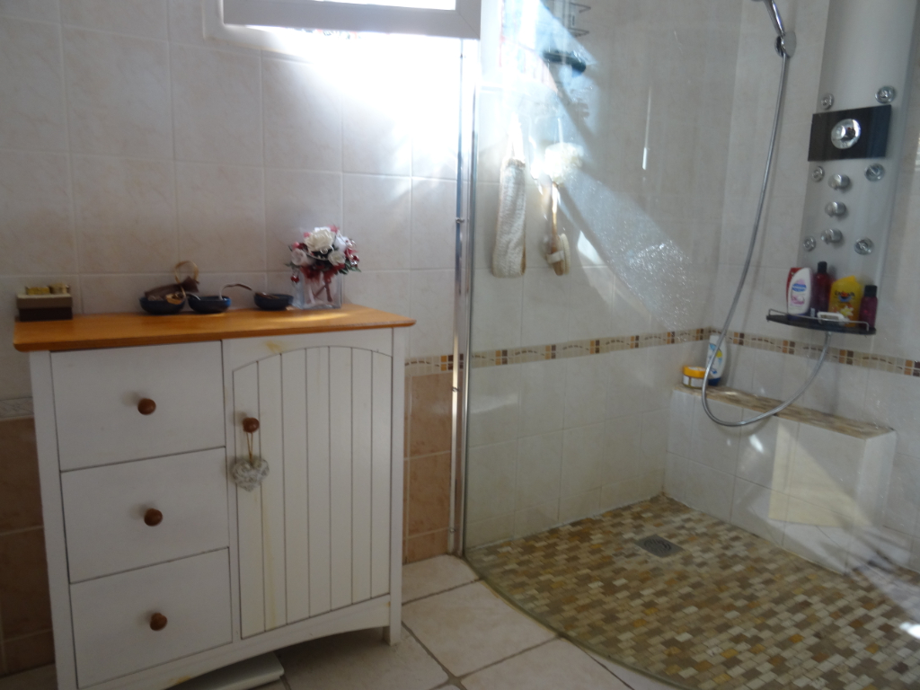 Côté extérieur, terrain piscinable, garage carrelé et isolé d’environ 27 m²; terrain aménagé.