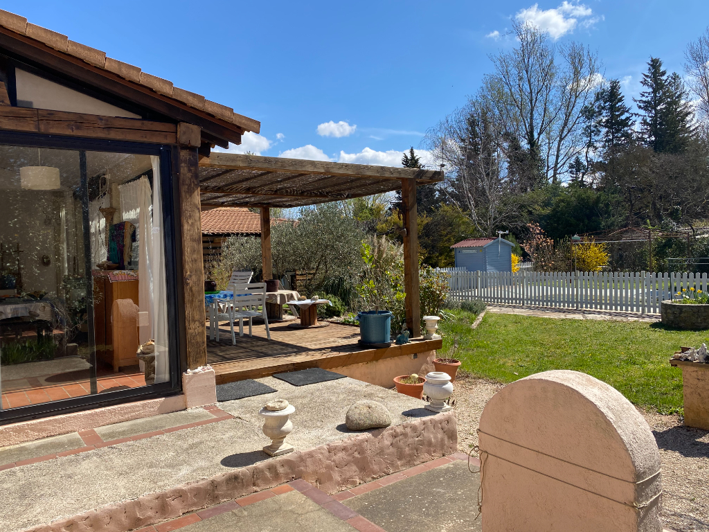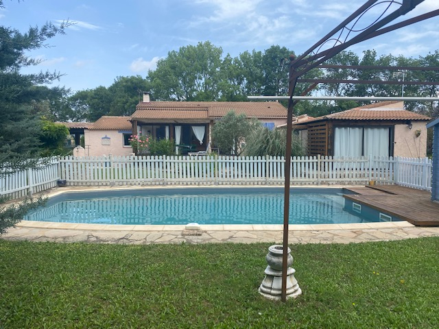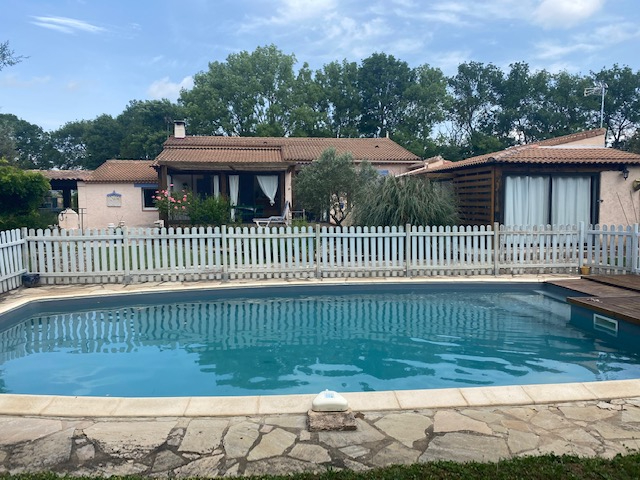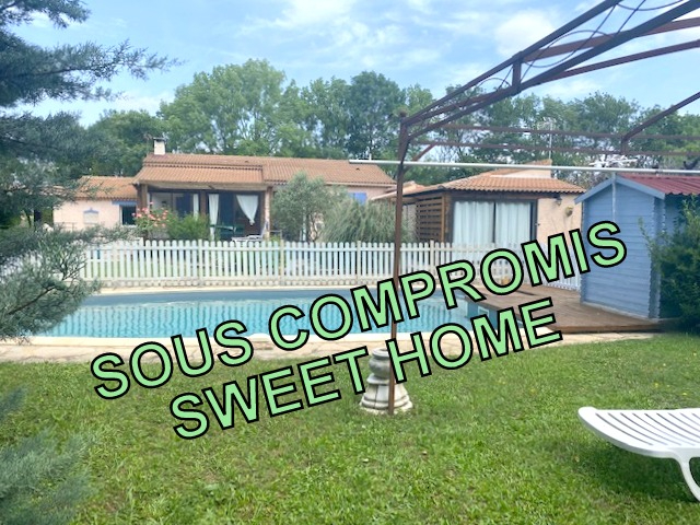A vendre en Exclusivité Sweet Home, à NEOULES: Dans un bel environnement, sans aucun vis à vis, villa de plain pied d’environ 105 m² + véranda + studio indépendant de 30m², entièrement rénovée, comprenant une véranda, un bel espace de vie avec cuisine ouverte, deux suites parentales, un bureau / buanderie. Piscine, double abri voitures et plusieurs annexes. Le tout édifié sur 2000 m² de terrain plat aménagé, arboré et clos. Pompe à chaleur, cheminée insert . Fosse septique aux normes