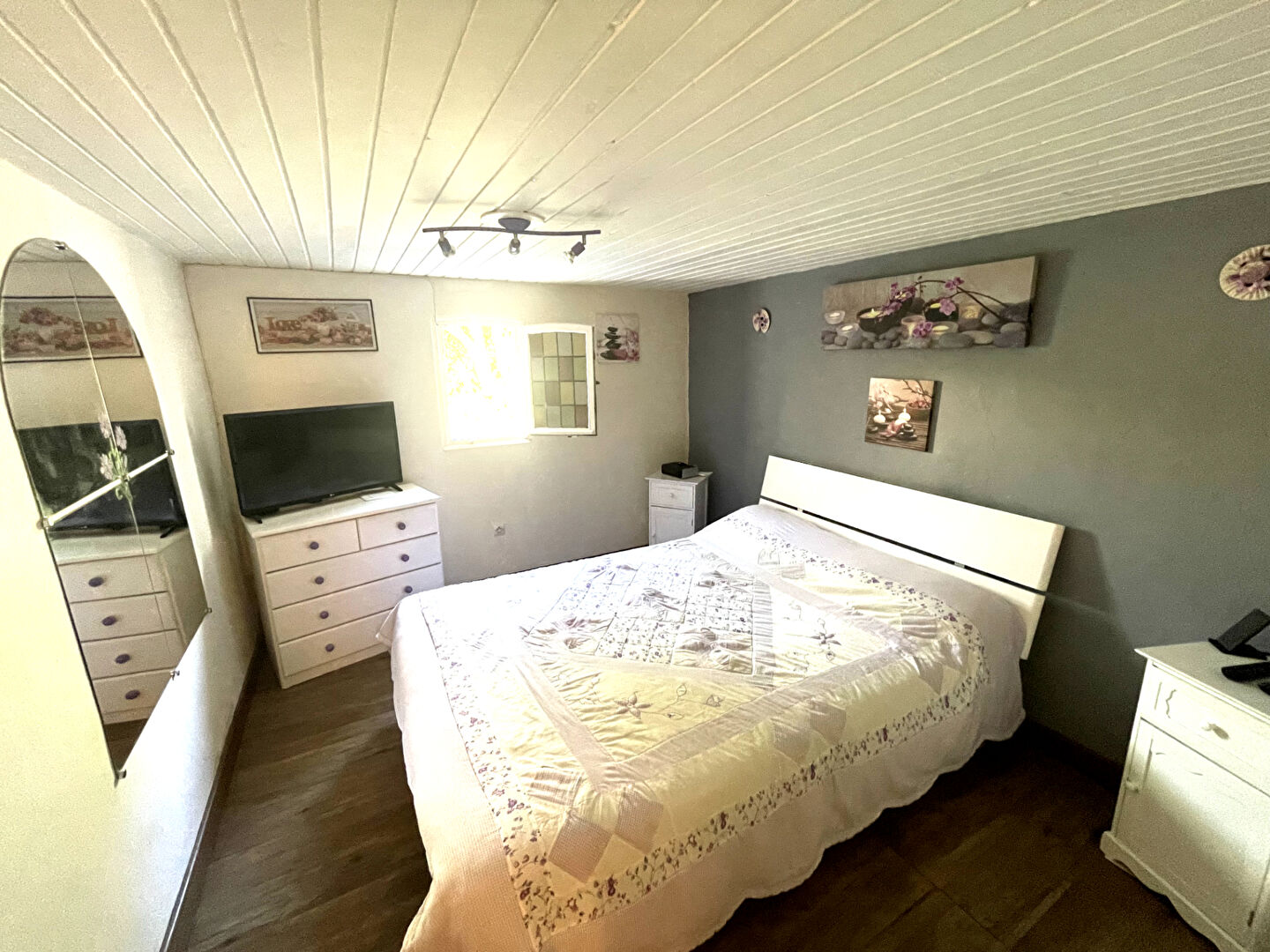 A l’extérieur, vous serez séduit par le calme et l’entretien du terrain avec abri voiture, garage et cabanon de rangement.