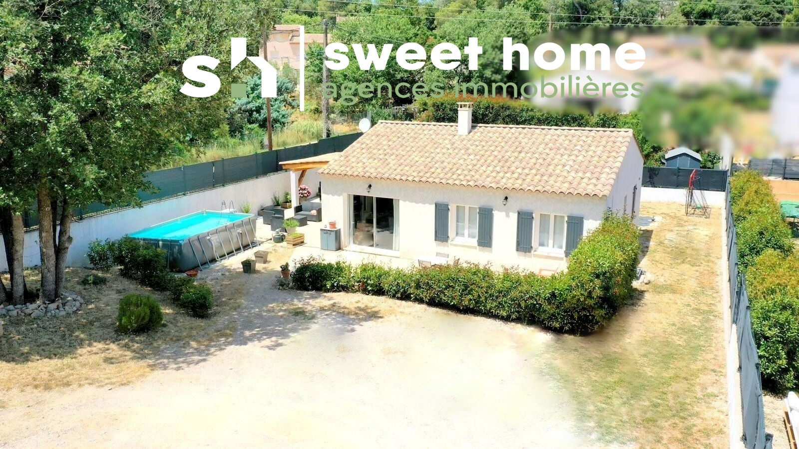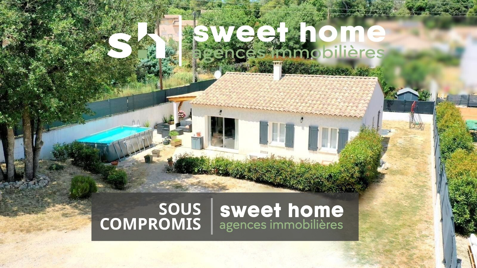 SWEET HOME, sur la commune de Rocbaron, jolie maison individuelle de type 4 de plain-pied d’environ 83 m² habitables, parfaitement entretenue, édifiée en 2017 ( encore sous garantie décennale) et composée : D’une entrée avec dressing, une pièce à vivre comprenant un salon-séjour avec cuisine ouverte et cellier, trois chambres, un dégagement, un wc indépendant, une salle de bain et une salle d’eau avec un second wc.