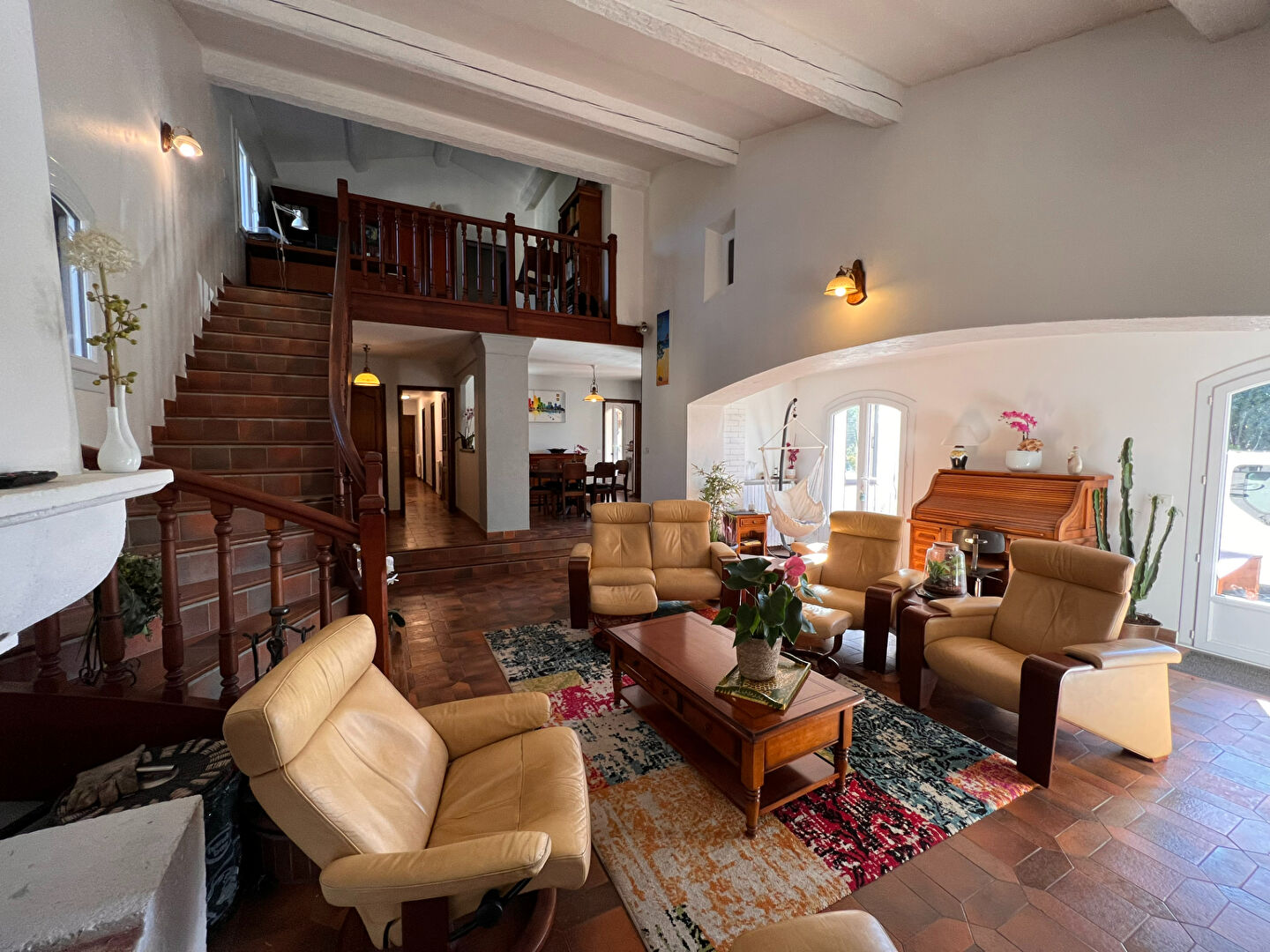 FORCALQUEIRET: Villa mitoyenne de 212 m² offrant beaucoup de potentiel et de volume avec au rez-de-chaussée son salon / séjour à plafond rampant surplombé par la mezzanine, une salle à manger avec cuisine indépendante équipée donnant sur la terrasses couverte et le jardin au sud. La partie nuit profite de trois belles chambres, une salle d’eau et un wc ainsi qu’un grand cellier / buanderie. A l’étage se trouve une grande mezzanine avec deux chambres, une salle de bain et un wc. Le terrain plat de 978 m² est situé dans un quartier résidentiel au calme et piscinable.
